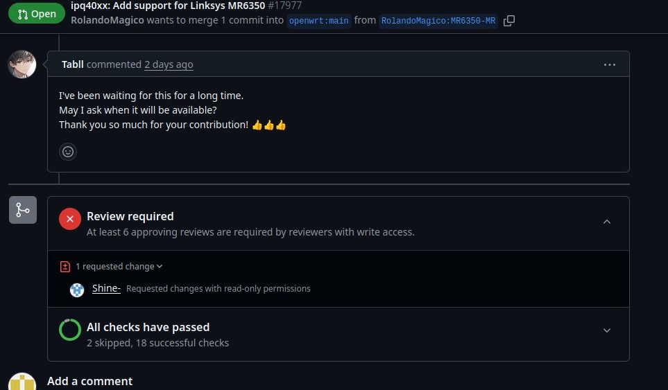 I have a device and at this point in time, I’m the only one who tested the updated code and the binary build on a an MR6350. I also submitted a second PR after: