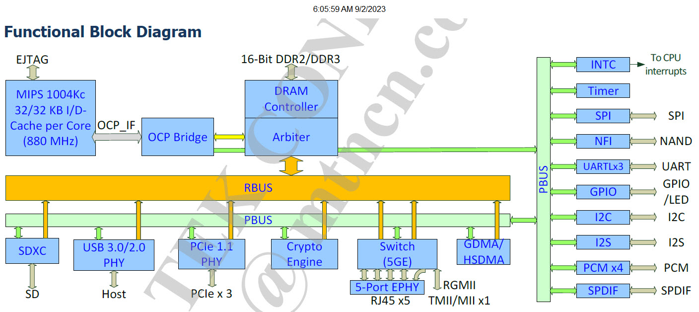 MediaTek(was RaLink) MT7621AT router-on-a-chip SOC with: