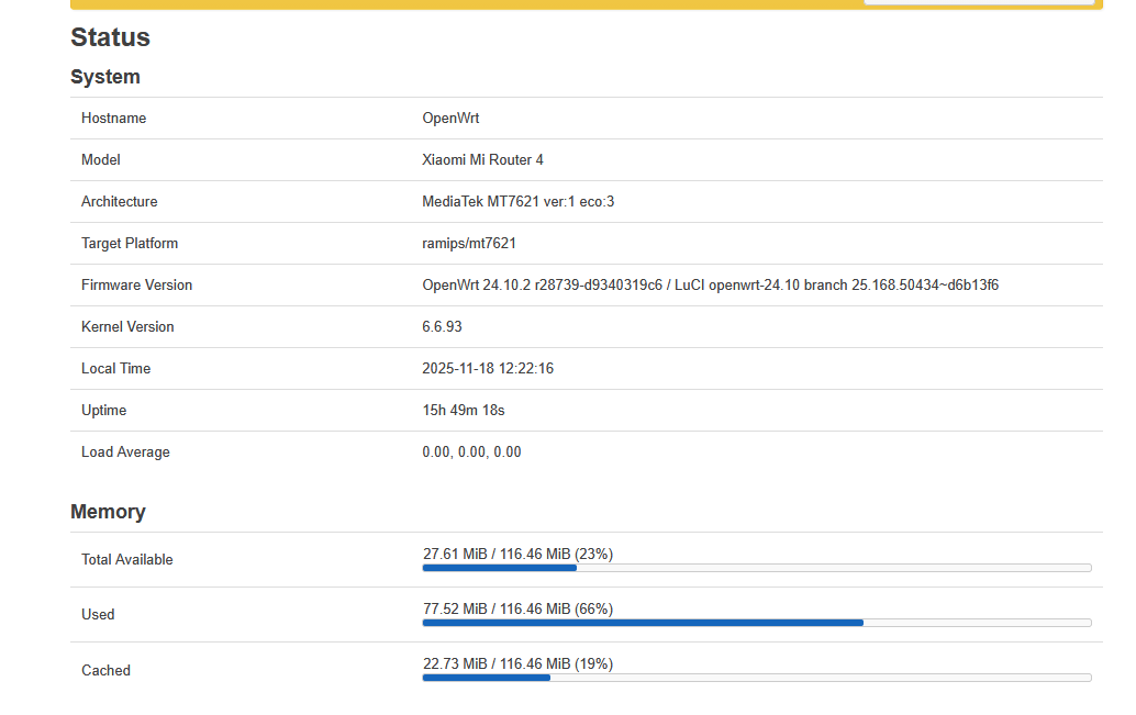 is it normal to have 78% of ram used in a fresh insttaled openwrt no packages installed ???