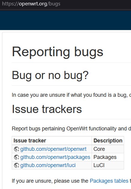 On the OpenWRT website I also see Github as being the only place to report bugs: