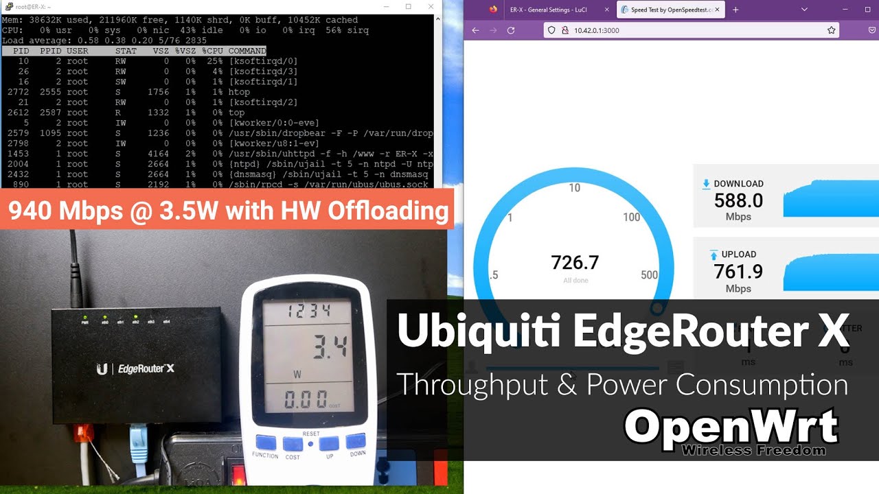 Here is an ER-X flashed with openwrt @ 2.4w to 3.5w max for an apples to apples comparison: